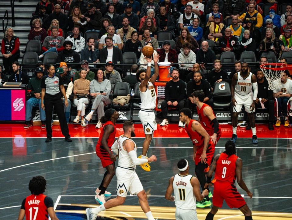 卡马拉连续两次立功,先是封盖了约翰逊的上篮,随后又逼抢约老师造成争球。最后3秒,开拓者前场边线球,格兰特造成掘金犯规,2罚2中开拓者领先2分。掘金没有暂停,1.4秒后场发球,约基奇绝平跳投打铁,开拓者2分险胜。