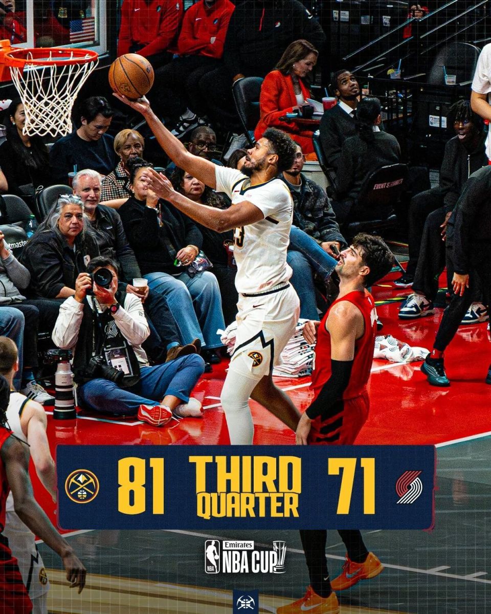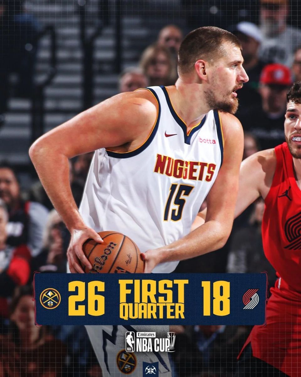 第一节打完,掘金26-18领先开拓者8分。霍勒迪首节投篮5中0,克林根4中0,卡马拉5中1。第二节穆雷带着替补阵容,开拓者则是拿上五小阵容,掘金最多领先到12分。约老师在防守端划水,开拓者内线外线两开花,半节4记三分。